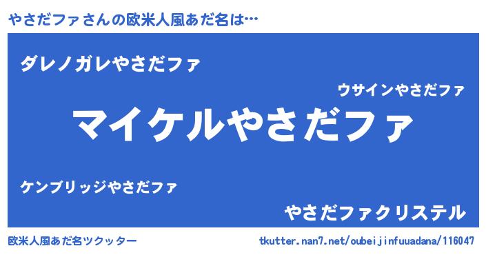 | 男性向けラノベタイトル風あだ名 | 『やさだファの憂鬱』 |