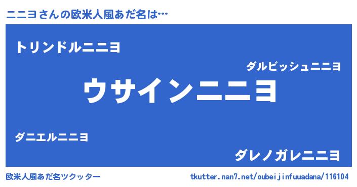 | 男性向けラノベタイトル風あだ名 | 『ニニヨの嫁は女の子じゃないと思った?』 |