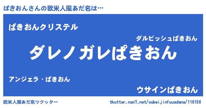 | 男性向けラノベタイトル風あだ名 | 『この素晴らしい世界にぱきおんを!』 |