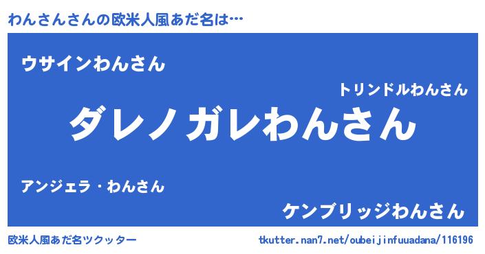 | 意味不明あだ名 | 『住所不定無職わんさん(9歳)』 |