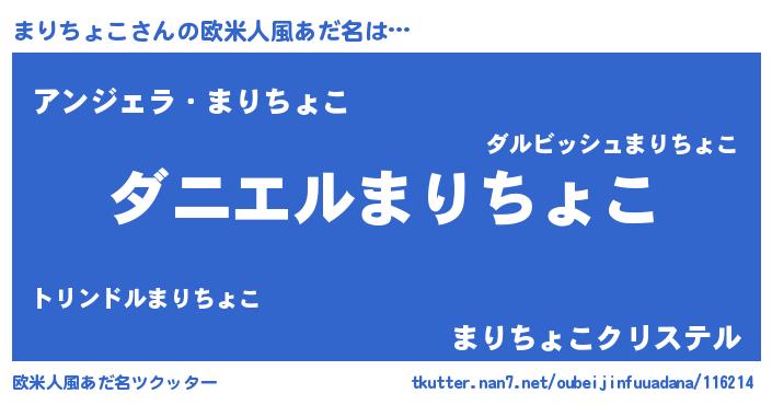 | 男性向けラノベタイトル風あだ名 | 『おまえをオタクにしてやるから、俺をまりちょこにしてくれ! 』 |