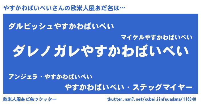 | ヘコむあだ名 | 『やすかわばいべい(笑)』『やすにゅー』 |