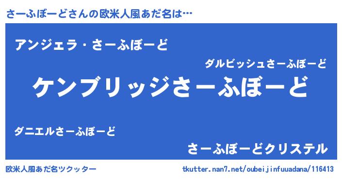| 女子向けラノベタイトル風あだ名 | 『さーふぼーどなんてお断りですっ。』 |