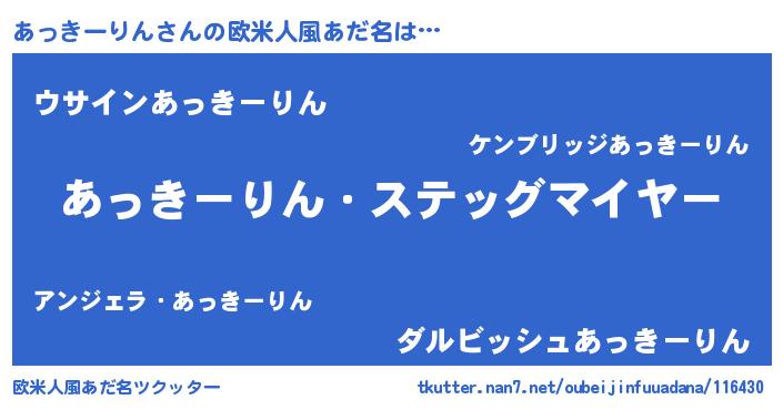 | ヘコむあだ名 | 『あっぷりん』『あっきーりん(苦笑)』 |