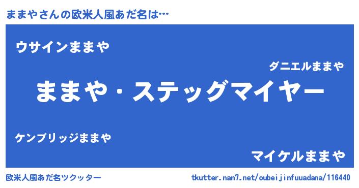 | 男性向けラノベタイトル風あだ名 | 『緋弾のママヤ』『ままやの憂鬱』 |