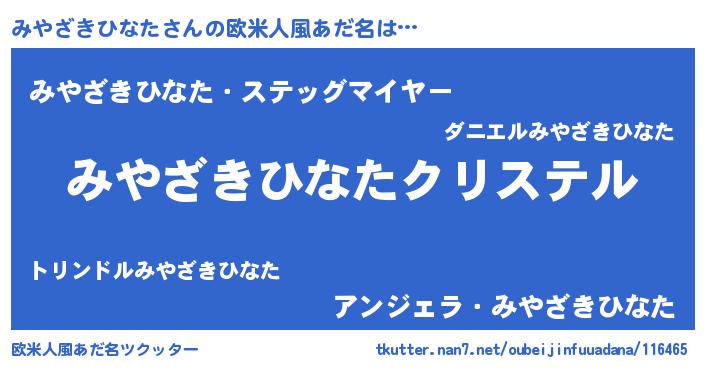 | ファンタジー風あだ名 | 『エターナルミヤザキヒナター』 |