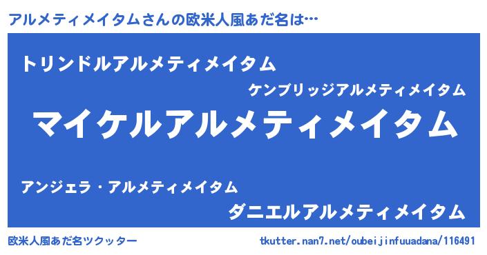 | 男性向けラノベタイトル風あだ名 | 『アルメティメイタムアートオンライン』 |