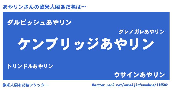 | 女子向けラノベタイトル風あだ名 | 『あやリンアンティーク』 |