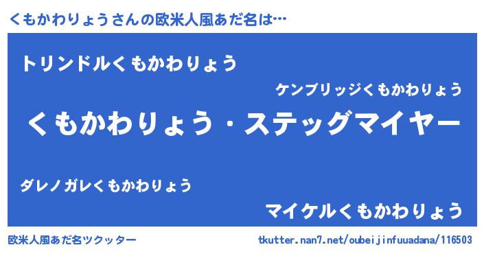 | ヘコむあだ名 | 『くもにゅー』『つくし』『くもを』 |