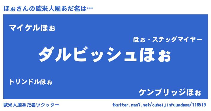 | 2回繰り返すあだ名 | 『くちゅくちゅ』『ほぉほぉ』 |