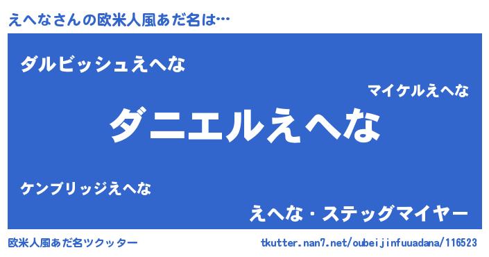| 女子向けラノベタイトル風あだ名 | 『死神えへなの再婚』『えへなの契約王妃』 |