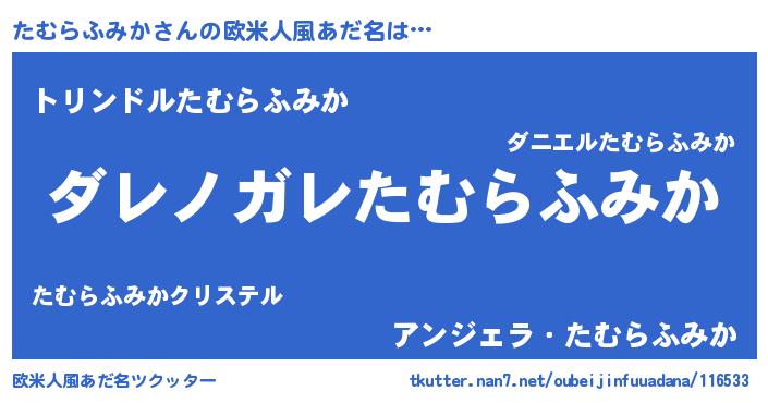 | 男性向けラノベタイトル風あだ名 | 『魔弾の王とたむらふみか』 |