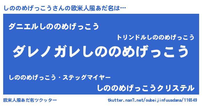 | 男性向けラノベタイトル風あだ名 | 『魔弾の王としののめげっこう』 |