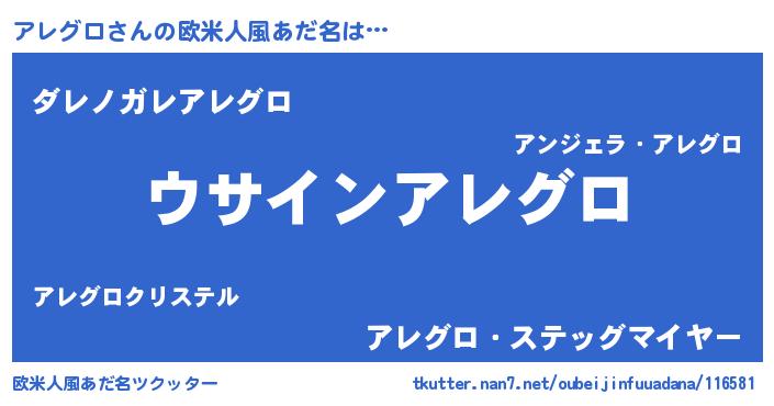 | 男性向けラノベタイトル風あだ名 | 『アレグロの嫁は女の子じゃないと思った?』 |