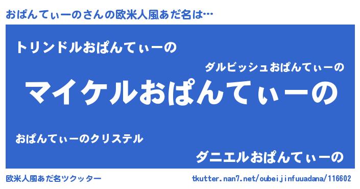 | 男性向けラノベタイトル風あだ名 | 『オパンティーノアートオンライン』 |