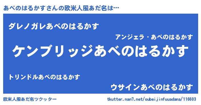| 意味不明あだ名 | 『自称あべのはるかす』 |