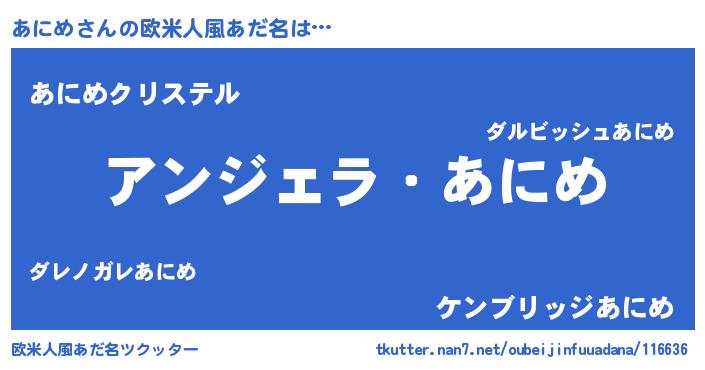 | 意味不明あだ名 | 『あにめフォーエバー』『自称あにめ』 |