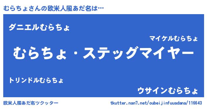 | ピコ太郎風あだ名 | 『ムム太郎』『ムラ十郎』『ムコ二郎』 |