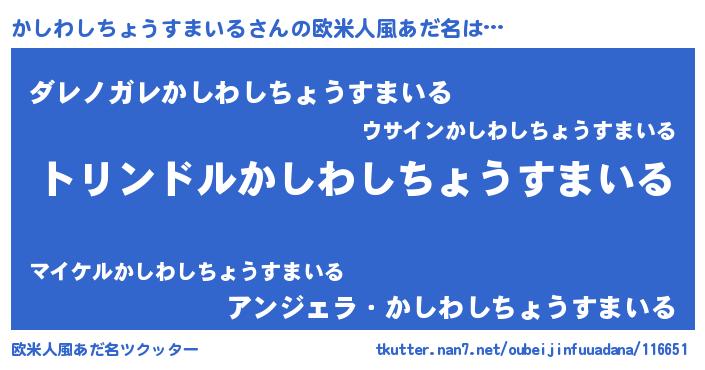 | 伝説のあだ名 | 『孤高の遊び人かしわしちょうすまいる』 |