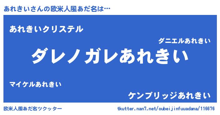 | 意味不明あだ名 | 『住所不定無職あれきい(50歳)』 |