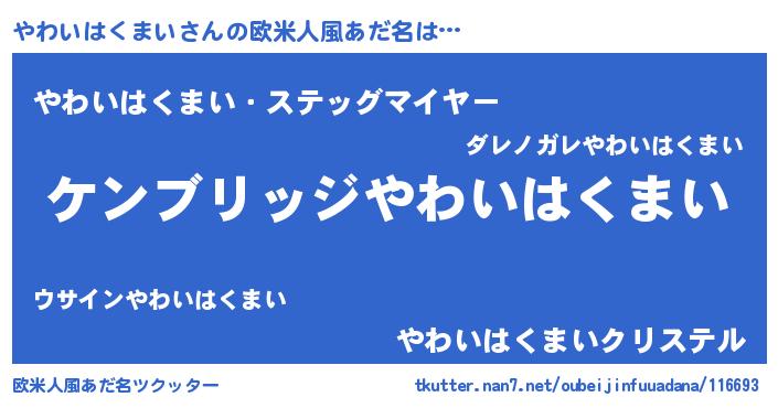 | ヒーロー風カッコイイあだ名 | 『ウルトラ戦士ヤワイハクマイ』 |