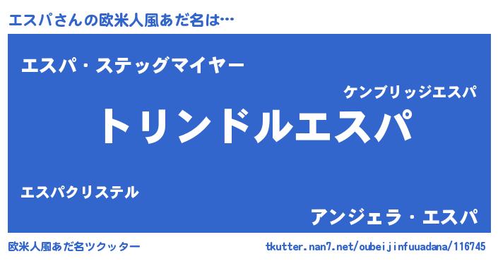 | ヒーロー風カッコイイあだ名 | 『超時空戦士エスパ』『愛の使者エスパ』 |