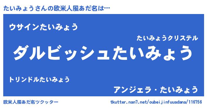 | 男性向けラノベタイトル風あだ名 | 『たいみょうという概念が存在しない退屈な世界 』 |