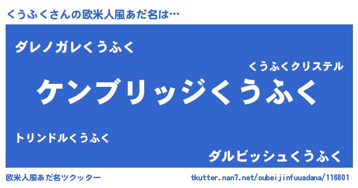 | 意味不明あだ名 | 『自称くうふく』『永久保存くうふく』 |