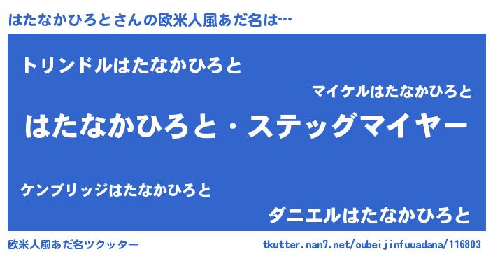 | 男性向けラノベタイトル風あだ名 | 『うちのはたなかひろとが世界を掌握している!』 |