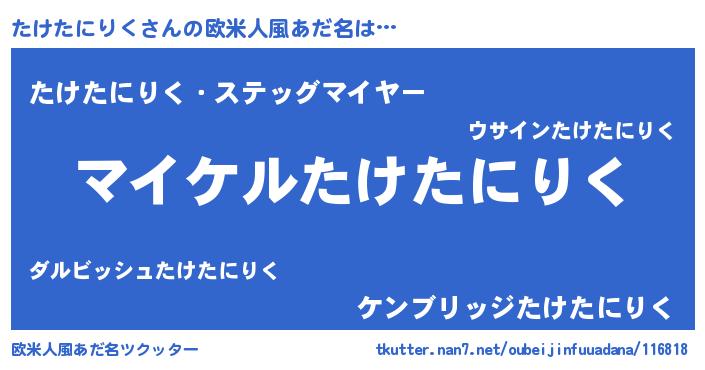| 胡散臭い通販商品みたいなあだ名 | 『億万長者になれるブレスレット…その名も「たけたにりく」』 |