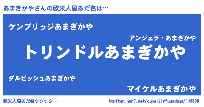 | 男性向けラノベタイトル風あだ名 | 『あまぎかや~年齢イコール彼女いない歴の魔法使い~』 |