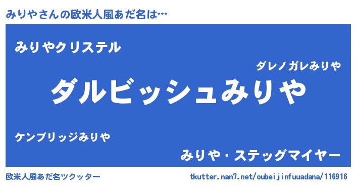 | 意味不明あだ名 | 『永久保存みりや』『みりやフォーエバー』 |