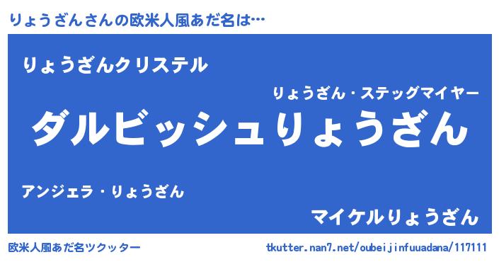 | 男性向けラノベタイトル風あだ名 | 『りょうざんという概念が存在しない退屈な世界 』 |