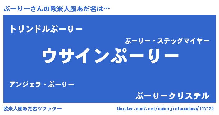 | 女子向けラノベタイトル風あだ名 | 『ぷーりーの卵を拾いまして』 |