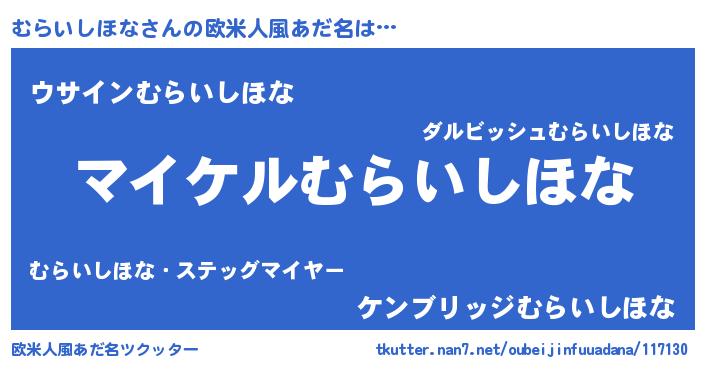 | 男性向けラノベタイトル風あだ名 | 『ムライシホナアートオンライン』 |