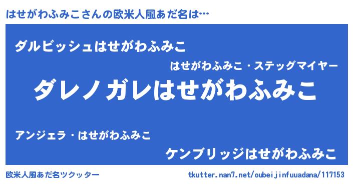 | 男性向けラノベタイトル風あだ名 | 『この素晴らしい世界にはせがわふみこを!』 |