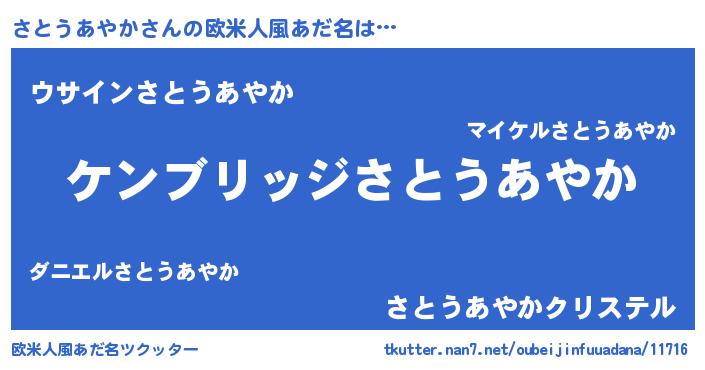| 女子向けラノベタイトル風あだ名 | 『さとうあやかストレイドッグス』 |