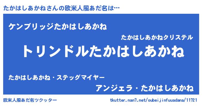 | 男性向けラノベタイトル風あだ名 | 『タカハシアカネスレイヤー』 |