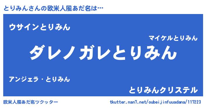 | 女子向けラノベタイトル風あだ名 | 『悪役とりみんに転生したようですが、知った事ではありません』 |