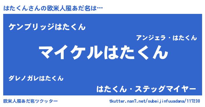 | ヒーロー風カッコイイあだ名 | 『スーパーハタクン』『仮面ハタダー』 |