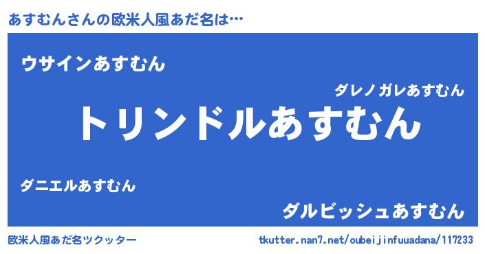 | 男性向けラノベタイトル風あだ名 | 『あすむん~年齢イコール彼女いない歴の魔法使い~』 |