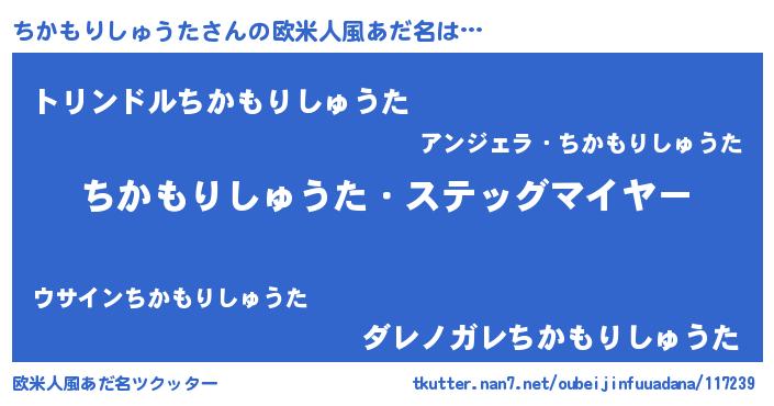 | 女子向けラノベタイトル風あだ名 | 『シンデレラちかもりしゅうた家の靴箱館』 |