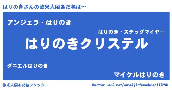 | 女子向けラノベタイトル風あだ名 | 『はりのきの婚約者』『はりのき恋絵巻』 |