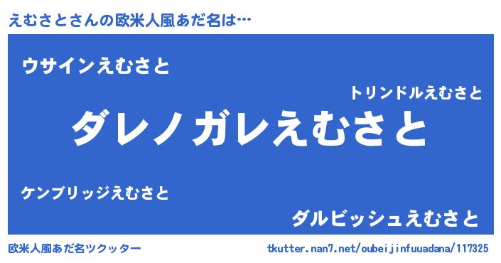 | 男性向けラノベタイトル風あだ名 | 『この素晴らしい世界にえむさとを!』 |