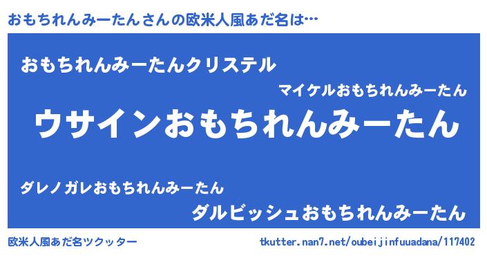 | 男性向けラノベタイトル風あだ名 | 『おもちれんみーたんの嫁は女の子じゃないと思った?』 |