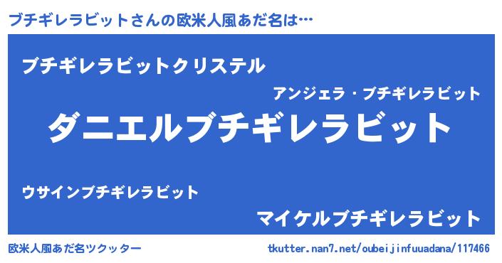 | 男性向けラノベタイトル風あだ名 | 『ノーゲーム・ノーブチギレラビット』 |
