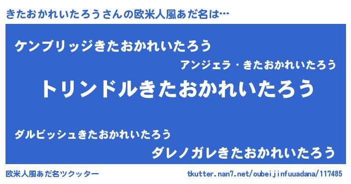 | 男性向けラノベタイトル風あだ名 | 『きたおかれいたろう~年齢イコール彼女いない歴の魔法使い~』 |
