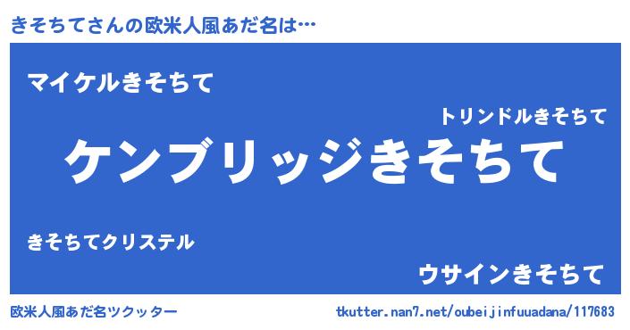 | 男性向けラノベタイトル風あだ名 | 『Re:きそちてから始める異世界生活』 |