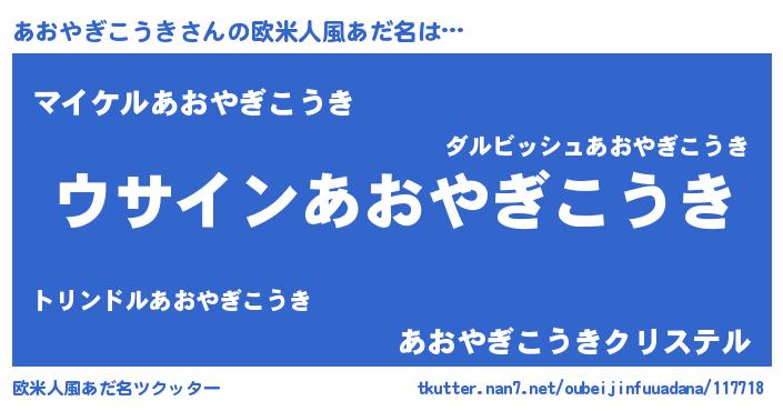 | 男性向けラノベタイトル風あだ名 | 『あおやぎこうきの嫁は女の子じゃないと思った?』 |