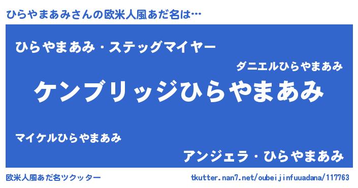 | 男性向けラノベタイトル風あだ名 | 『Re:ひらやまあみから始める異世界生活』 |